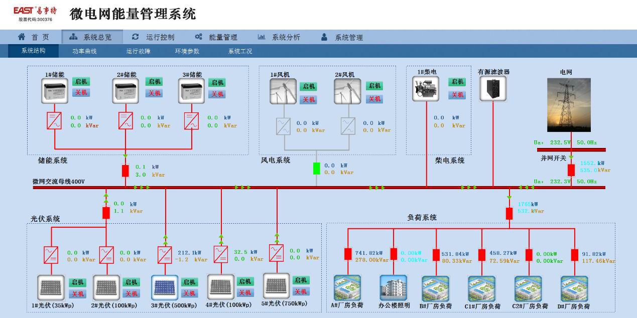 智能微电网是由光伏、风电等分布式发电单元、储能装置、相关负荷和监控、保护装置汇集而成的小型智能的发配电系统。微网系统是一个能够实现自我控制、保护和管理的自治系统,既可以与外部电网并网运行,也可以孤立运行。