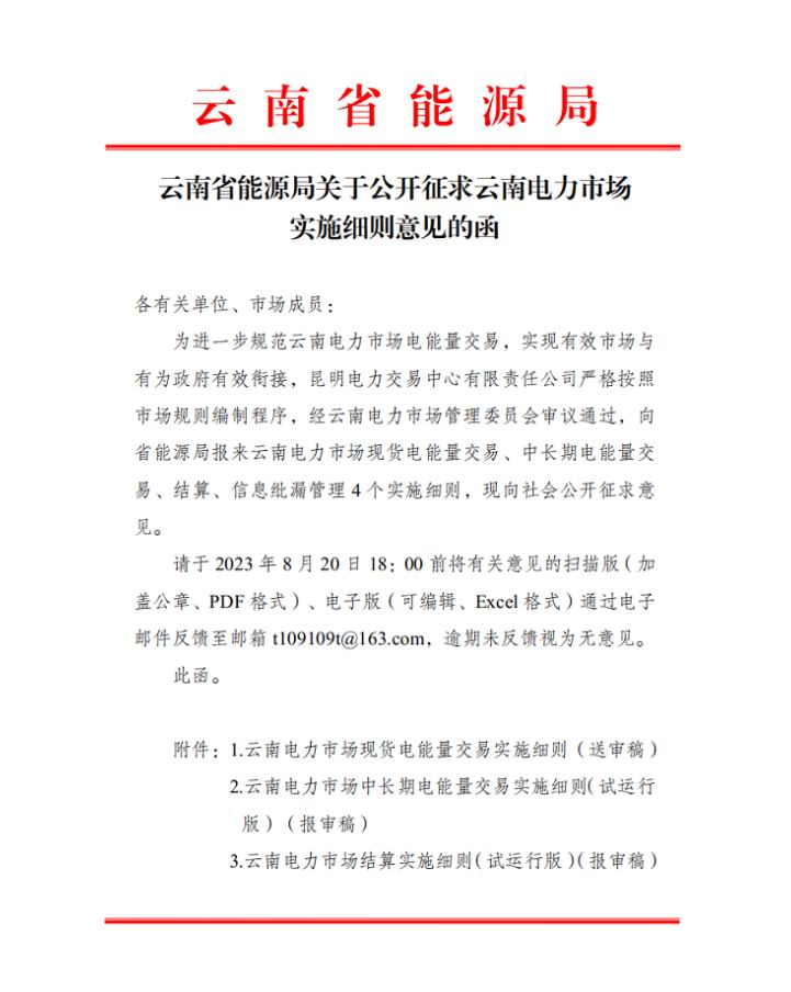 云南能源局:电力市场现货、中长期交易、结算等4大实施细则发布